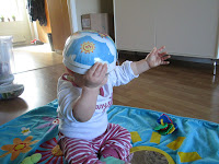 Hon satt på golvet å hennes storasyster tog upp henne. Jag satt vid bordet. Å medans dom pratar så ser jag plötsligt något rött å svart i Vs mun. Ut pillar jag ett av bilens däck som V lyckats gnaga bort. Vågar inte ens tänka på vad som kunde hänt om.... Usch.